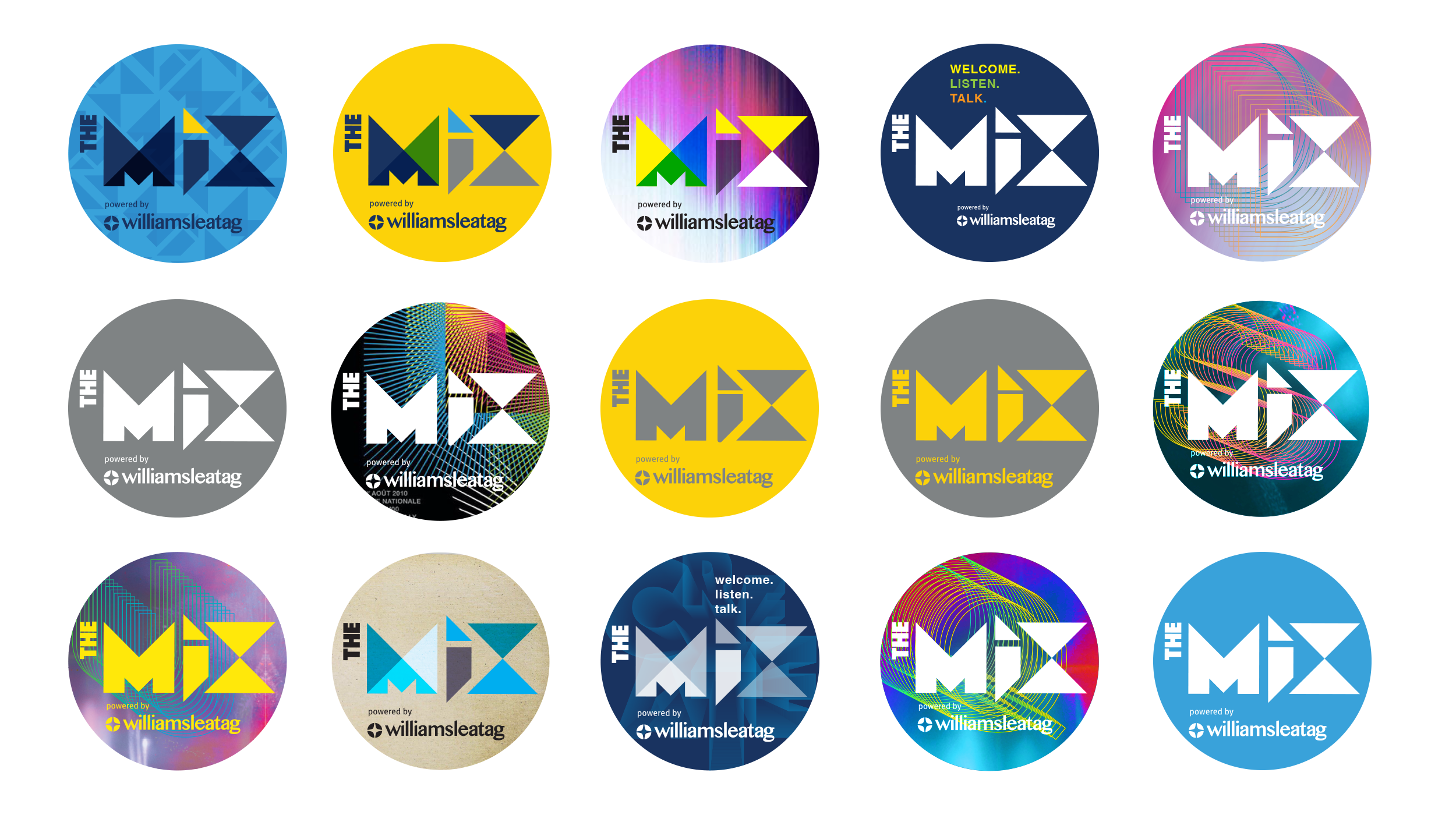 I assembled a creative team to generate names and early logo studies. The final name selected was The Mix. The Mix celebrated the diversity of experts and their unique backgrounds that became our foundation for a powerhouse team. The visual expression was energetic and bold incorporating geometric shapes, multiple color combinations, and opacities. The look and feel were expressed across all print and digital touchpoints such as, posters, emails, banner ads, social posts, buttons, and a guest login page.